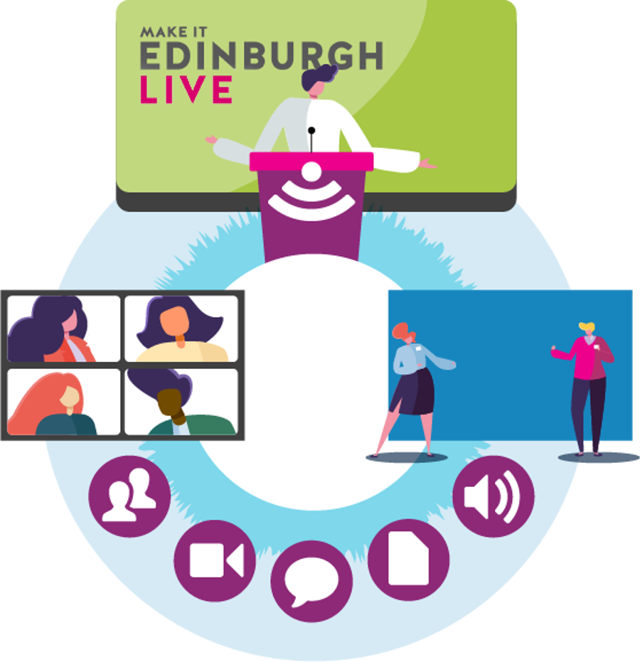 We believe that conferences have the capacity to spark ideas, drive progression, and change the world for the better. In our ever-changing world, this power cannot be put on hold. We’re very proud to introduce Make It Edinburgh Live, a hybrid events solution that is designed to flex to fit your needs, and to keep ideas thriving.