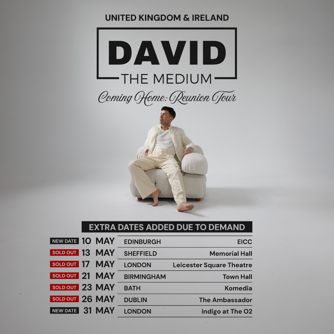 Join internationally-recognised Australian Psychic Medium, David the Medium, on his Coming Home: Reunion tour as he commences off his first ever multi-city tour of the United Kingdom.